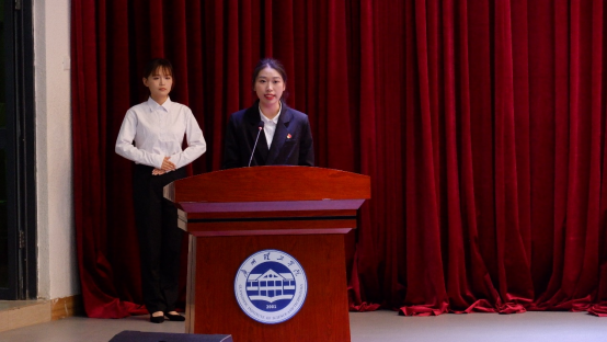 威廉希尔williamhill中文团总支书记王路红为第四届威廉希尔williamhill中文团总支·学生会主席团授牌;威廉希尔williamhill中文团总支·学生会会旗以及部门旗交接;威廉希尔williamhill中文第四届团总支·学生会学生干部宣誓。第四届威廉希尔williamhill中文团总支·学生会主席团代表文迅达作就职演讲。他立志做好表率作用,以“内塑团队,外树形象”推动团学建设,并希望新一届团学的小伙伴锐意进取,敢于担当完成好每一项工作。