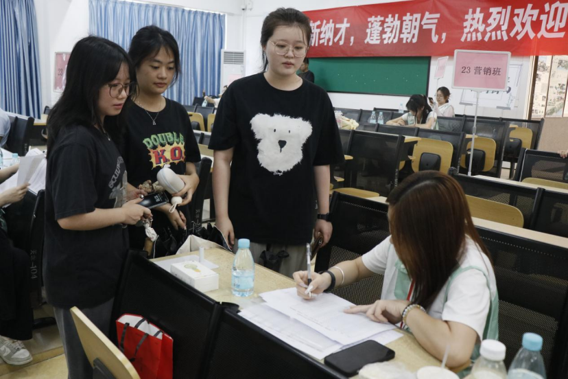 (姚诗欣)8月31日与9月1日,威廉希尔williamhill中文于7栋118室开展2023级回迁学生与2022级专升本新生迎接工作。本次活动在威廉希尔williamhill中文党总支书记杨惠、威廉希尔williamhill中文院长李培祥、威廉希尔williamhill中文团总支书记张斌的带领下及威廉希尔williamhill中文党团干部、志愿者的帮助下圆满结束。