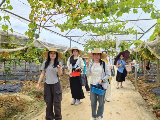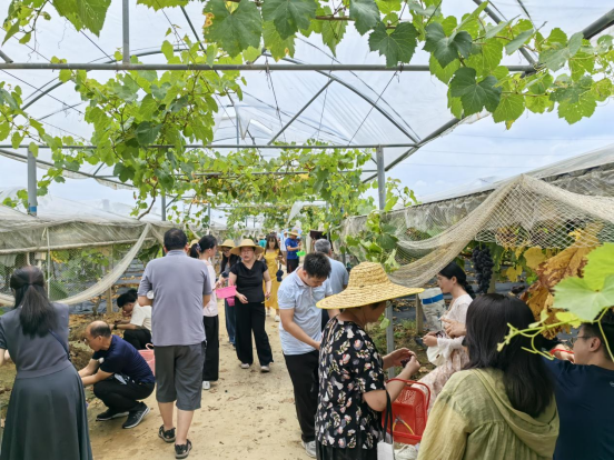 随后,团队前往葡丰生态园,体验现代农业的魅力。时值七月,园内葡萄、百香果、无花果等水果正值成熟期,教职工们亲手采摘,品尝新鲜果实,并参观自酿葡萄酒工艺,感受田园生活的乐趣。