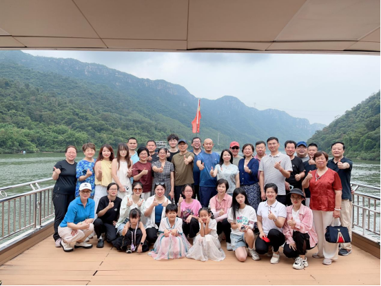 下午,团队泛舟抵达飞霞风景名胜区,这里是广东首批风景名胜区,被誉为"岭南第一福地"。教职工们首先合影留念,随后参观孔子文化园,欣赏编钟古乐表演,感受儒家文化的魅力。接着,大家自由活动,或探访飞霞洞、藏霞古洞、锦霞禅院,或漫步登山古道,欣赏摩崖石刻,或在礼耕书屋品茶、抄经,享受山间的静谧时光。