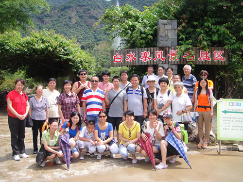 22日一早,我系教职员工一行29人坐上旅游大巴,前往白水寨。一路上虽然飘着细雨,但到了景区已是阳光明媚。