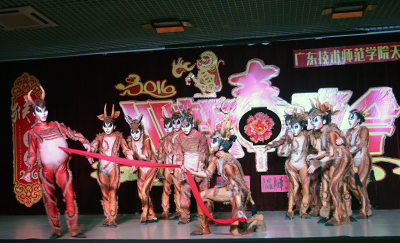 晚会在艺术团舞蹈《春天的盛宴》中拉开帷幕,机电工程学院师生联袂展现的葫芦丝二重奏《月光下的凤尾竹》把大家带入到了祥和宁静的少数民族田园风光,财经学院的舞蹈《视觉黑白配》、建筑工程学院的歌舞《忆青春》、电气与电子学院的音乐剧《光阴的故事》则把大家引领到了大学时光的美好回忆中,管理学院的小品《天猫》以电商为主题充分展现出专业教学特色水平,通识教育学院的歌舞《燃烧激情,放飞梦想》将青年教师的活力与阳光演绎得淋漓尽致,机关改编的话剧《新白毛女传奇》让人耳目一新,外国语学院“砖家”吐槽的《二胎那些事》则让人忍俊不禁……艺术团的舞蹈《羚羊的外套》以保护藏羚羊为主题展现我校师生积极参与和谐自然建设和保护野生动物的美好情怀!艺术学院的《举杯吧朋友》和信息与传媒学院的《美丽的神话》则用歌舞表达对菁菁校园和美好时代的良好祝愿。