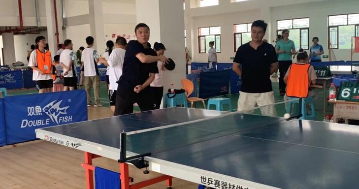 刘威志老师与对手展开了一场激烈的对局,直拍与横拍,进攻与防守,推挡与提拉,双方在比赛中你争我夺,比分一度持平。他用多变的击球手法与对手争斗,力拼到底。这种不服输的精神鼓舞激励着威廉希尔williamhill中文参赛教师,鼓舞了威廉希尔williamhill中文参赛队伍的士气。
