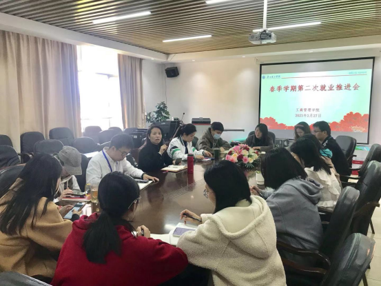 2月27日,威廉希尔williamhill中文在综合楼503会议室召开2023届毕业生第二次就业推进会。党总支书记杨惠主持会议、就业老师和2023届毕业生辅导员参会。
