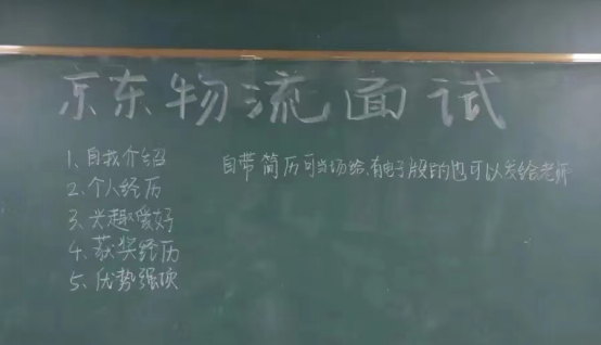 面试官到达现场后,详细介绍了面试流程,面试内容包括自我介绍、个人经历、兴趣爱好、获奖经历以及自我的优势和强项等方面。随后,两位面试官分别进行一对一的面试。在面试过程中,面试官与同学们进行沟通交流,以进一步了解同学兴趣、意愿、认知及职位发展规划等,同时也加深了同学们对京东物流公司以及相关行业的了解。