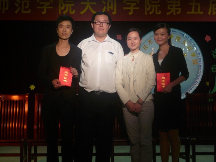 (通讯员 程金烈)在10月20日晚举行的天河学院第五届大学生职业规划大赛决赛中,我系推荐的三名选手通过书面作品及现场展示两个评比环节的角逐。最后我系廖丹丹、周麟武、林桂英获得“十佳职业规划之星”称号,其中廖丹丹、周麟武荣获一等奖、林桂英荣获三等奖。管理系荣获优秀组织一等奖。