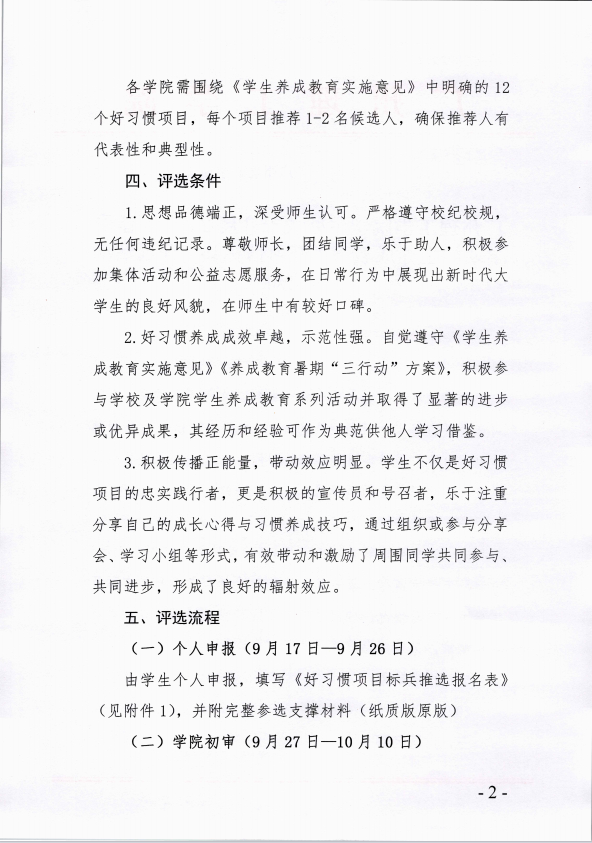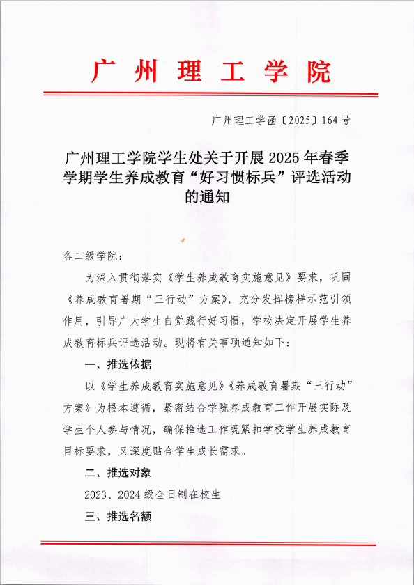 威廉希尔williamhill中文学生处关于开展2025年春季学期学生养成教育“好习惯标兵”评选活动的通知