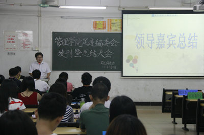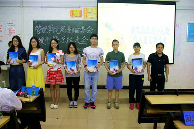 (通讯员:陈炜强)5月25日晚,管理学院《足迹》编委会在六栋教学楼举行了第三期杂志发刊仪式暨总结大会。我校党群工作部部长黄菲青、管理学院党总支书记杨晓文、校办公室秘书科科长郑培佐、管理学院办公室主任钟清恒、团总支书记黄伟剑,党支部代表、管理学院团总支·学生会代表、宿委会代表及各兄弟组织,协会、作者、学生代表应邀出席本次大会。