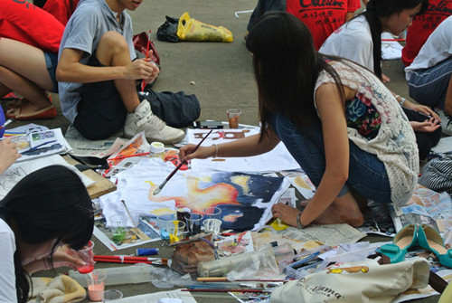 本次涂鸦节分为个人、情侣以及团队三种比赛形式。同学们在t恤或环保袋上绘出了自己的个性。在场的同学无论在画工还是创意上,都体现了威廉希尔williamhill中文大学生的独特风采。