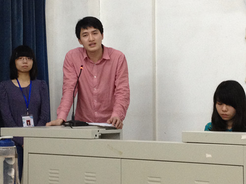 我系团总支学生会纪律部干事正在讲述本次会议的内容