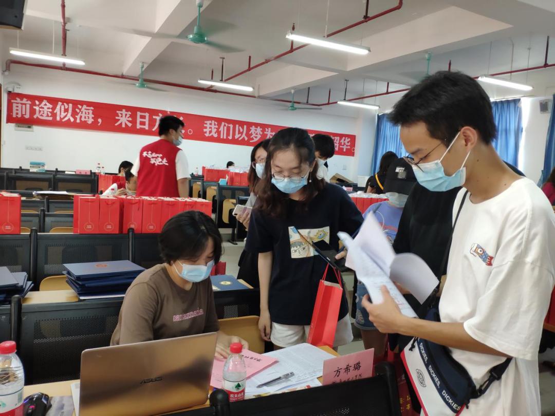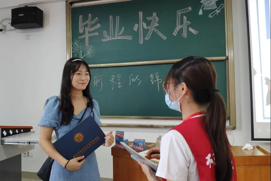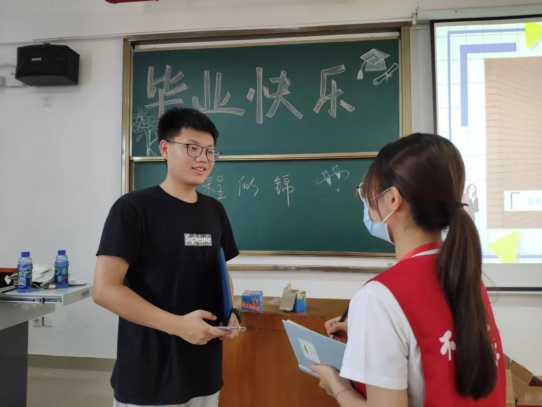 在教室的现场,各位辅导员在为毕业生办理离校手续,威廉希尔williamhill中文学生党支部的志愿者们也在忙碌的奔波,这一整个离校流程在志愿者们的帮助下正有条不紊的进行着。与此同时学院为毕业生准备了精美的水壶和口罩等等一系列的礼物,学校也准备了贴心的礼袋给所有的毕业生,让他们在炎炎夏日中也能感受到一丝清凉。