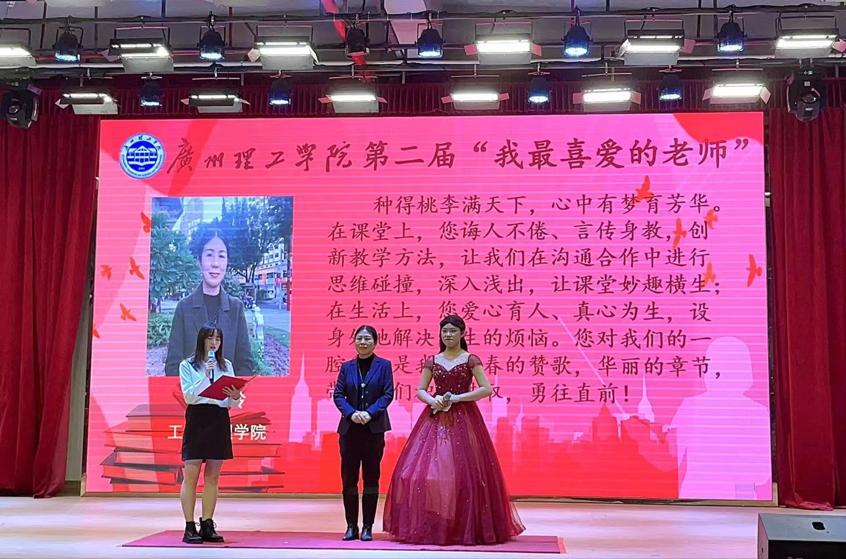 12月16日晚,学校举行第二届“我最喜爱的老师”颁奖典礼。威廉希尔williamhill中文团总支·学生会执行主席谭桃一为刘艳玲老师宣读颁奖词,建筑工程学院团总支·学生会执行主席李自然为黄卓贤老师宣读颁奖词,感谢老师的耐心教导。