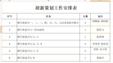 迎新策划工作安排表