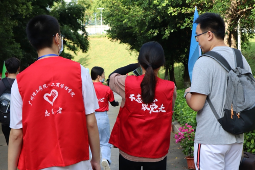 学生党员在校道指引新生前往宿舍(鄢璐摄)