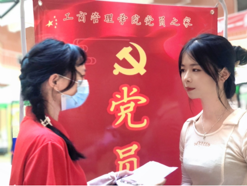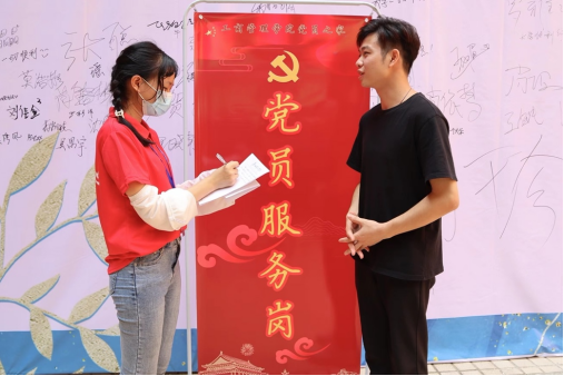 学生党员在党员服务岗为新生答疑解惑(李鸿杰摄)