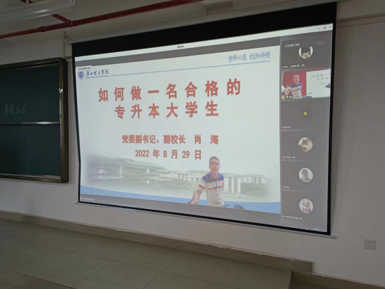 29日线上课程通过党委副书记、副校长肖海讲授《如何做一名合格的专升本大学生》,团委书记彭文刚讲授《如何丰富第二课堂生活》,太和派出所副所长罗焕明讲授《如何预防电信网络诈骗》等课程,让专升本新生能够更明确自身定位,同时明确了新生的学习目标,坚定了学习理念,为新生在以后的学习与生活指引方向。