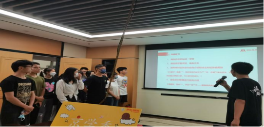 欢迎会上,罗玉娟经理首先表示对苗苗们的欢迎,及向苗苗们介绍园区里的各类生活区域,讲解在工作时的注意事项,并强调园区一定要慎重对待自己的工作,不能随便应付,要对自己、学校及京东公司负责。随后由秦金中老师发表致辞。他表示,同学们需要优先注意安全,安全是是第一原则,即使可以出入园区也要注意疫情问题,非必要不出园区。其次是注意沟通,学会跟园区里的工作人员沟通,学会跟同学、老师沟通。最后要珍惜自己实训机会,沉浸角色转换,抱着学习的心态投入本次实训。