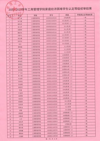 (记者:吴海宁,编辑:蓝晶晶)为认真做好家庭经济困难学生的认定工作,公平、公正、合理地分配资助资源,切实保证国家制定的各项高等学校资助政策和措施真正落实到家庭经济困难学生身上,根据省厅及我校相关文件精神,经学生申请及班级、学院评审小组评议,现将威廉希尔williamhill中文 2022-2023 学年家庭经济困难学生认定等级初审结果予以公示,公示时间为 2022 年 10 月 9 日至 2022 年 10 月 13 日。初审名单公示如下。