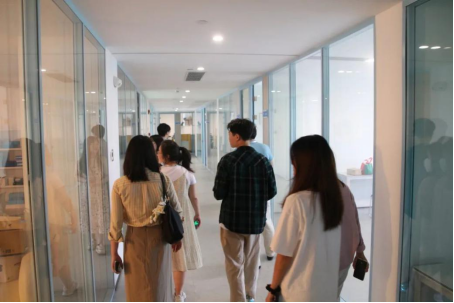 企业负责人费腾也针对学生的问题:“实习期间设备的申请与借取、店铺运营板块以及投流测试 "进行逐一的回应和解答。随后在两位企业工作人员的带领下参观了凡岛网络公司的直播楼层,讲解了各直播间针对品牌调性的不同进行差异化布置。研发部楼层的扁平透明化管理和开放式实验基地一应俱全,突出了凡岛网络公司以产品塑造口碑的理念,老师们也对合作抱有更高的期盼。