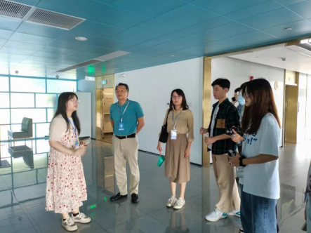 工作人员为我们讲解公司环境(郑华斑摄)