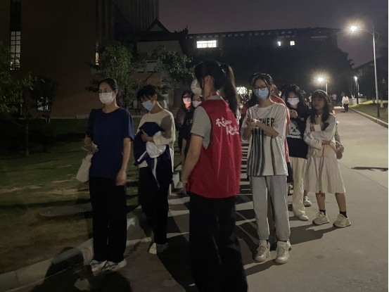 同志们迅速到达7栋咨询台集合,负责人廖辉康同志对协助核酸工作进行简单说明后,威廉希尔williamhill中文志愿者身着统一服装,第一时间赶到核酸检测点,助力学校高效完成核酸检测工作。