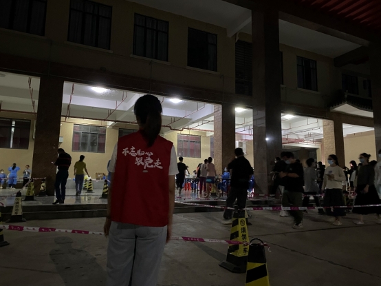 在整个核酸检测工作中,同志们积极报名,投身参与到核酸检测各项工作中,担起疫情防控之大任,保障核酸检测现场秩序井然有序地进行。他们用实际行动诠释了“为人民服务”的精神,并在核酸检测志愿服务中践行初心使命,筑牢战斗堡垒,彰显了新时代大学生的奉献精神和使命担当。
