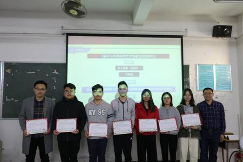 随后,主持人展示了2017-2018年人资专业学科竞赛的获奖成果。在之后的颁奖环节上,由指导老师们为第三届全国大学生人力资源管理知识技能竞赛二等奖获奖者曹后强、吴小贤、张传锦、黎新朗及“挑战杯·创青春”广东省创新创业大赛铜奖、第四届“互联网+”优胜奖等8项学科竞赛的获奖者进行颁奖。