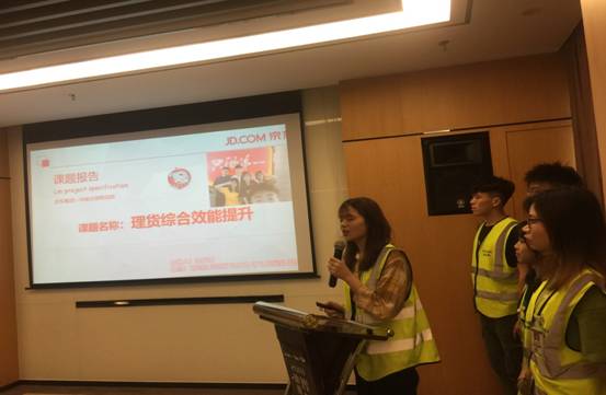 30日上午,京东亚洲一号物流园区为同学们举行了隆重的欢送会。会议的第一个议程是课题展示。京东在培养人才时,把“轮岗体验+课题”作为学习内容的核心部分,要求学生在实践过程中运用所学的理论知识去检验实践活动,发现问题、分析原因、找出对策,学以致用。首先,6个小组的同学分别用PPT演示了课题报告的成果,课题名称有:理货综合效能提升、端口定位拣货、纸箱投落通道及货架间空隙改善方案、拣货作业综合优化方案等。接着,企业领导对同学们的汇报进行了点评,既肯定了同学们的优点,也指出了PPT制作中的不足,方案的可行性方面论证不充分等问题。最后,企业根据各小组的表现,评选出了两个优秀小组并颁发了奖状。第二个议程是企业为在实训活动中表现突出的蔡林秀、方晓燕等8名同学颁发了“优秀学员”荣誉证书。
