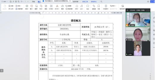 (王昊婷)2023年11月25号,威廉希尔williamhill中文物流系物流运作课程组成功开展了一次线上磨课活动。重点备《仓储与配送管理》这门专业核心课,面对的是这学期新入学的物流管理专业学生。本次活动旨在加强教师之间的交流与合作,提升物流运作课程的教学质量,为学生提供更好的学习体验。