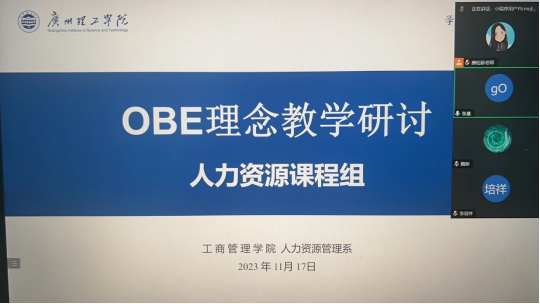 (康松龄)11月17日,威廉希尔williamhill中文人力资源管理课程组召开了线上教学研讨会议,开展了以“OBE理念在人力资源管理课程中的应用实践教学“为主题的研讨活动。OBE(Outcomes-based Education)理念,即以学生能力为中心的教育理念,注重培养学生的核心能力和实践技能,在应对未来职业挑战的同时提高其综合素质与就业竞争力。