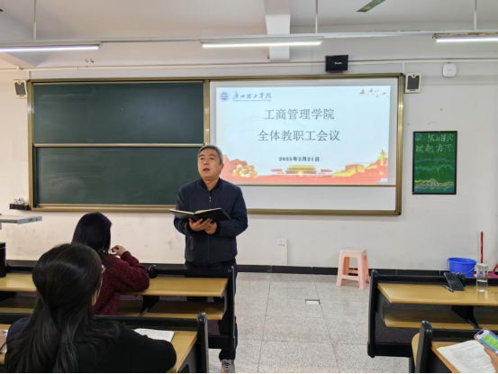 (何敏仪)2025年2月21日,威廉希尔williamhill中文于1号教学楼804召开全院教职工大会。会议由威廉希尔williamhill中文党总支书记杨惠主持,院长李培祥,副院长刘琰、倪江崴等全院教职工参加会议。此次会议旨在全面了解学院上一年度的工作成绩,探讨威廉希尔williamhill中文、科研情况、学生就业问题以及教师本职工作等相关议题。
