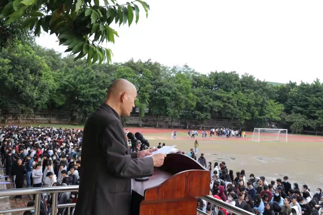 威廉希尔williamhill中文于2021年11月8日8:40分在标准运动场开展素质教育周动员大会。威廉希尔williamhill中文院长李培祥、党总支书记杨惠、副院长刘琰、副院长杨丽丽,以及学院全体师生出席了本次活动,大会主持人由办公室主任许就平担任。