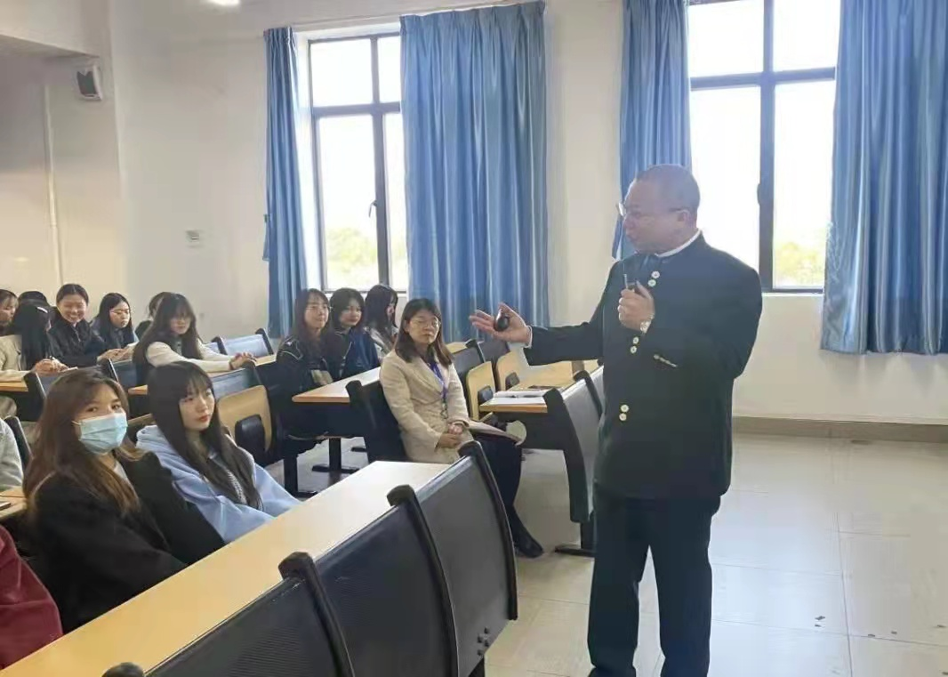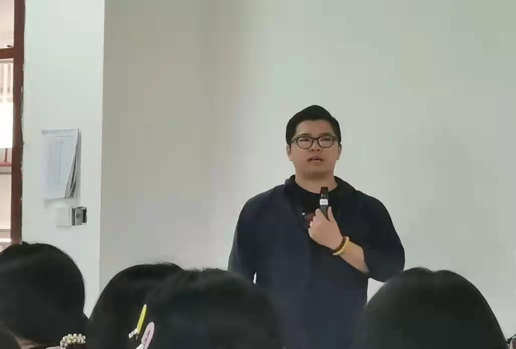 广州三棵榕集团总经理助理陈煜先生以自身经验与在场的同学们分享人生规划、学习规划与职业规划,讲述自己从非专业领域一步一步成为“专业”人士,告嘱同学们一定要抓住每一个转瞬即逝的机会,努力蜕变。