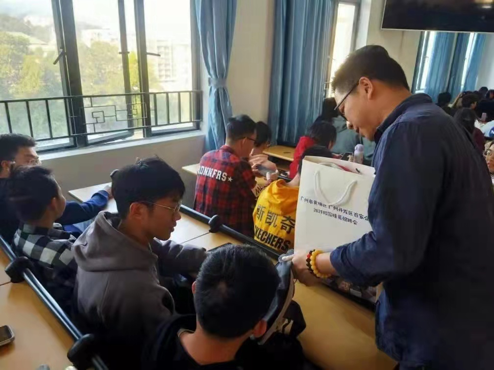 第二场是16:30-18:00,广州午马猎头公司的创始人伍江平团队进行了宣讲。伍总围绕着“什么是猎头?”引导同学们对于猎头行业与人力资源管理职业的深入思考,伍总以午马猎头从2009年开始专注于猎头行业的经验,把“猎头”这一概念进行详细剖析,从我国经济发展现状、人力资源管理行业发展现状等,阐述了猎头行业存在的独特价值逻辑,从用人方、职业经理人等角度剖析猎头行业的核心要素,总结十几年来猎头工作的经验并分享给同学们。