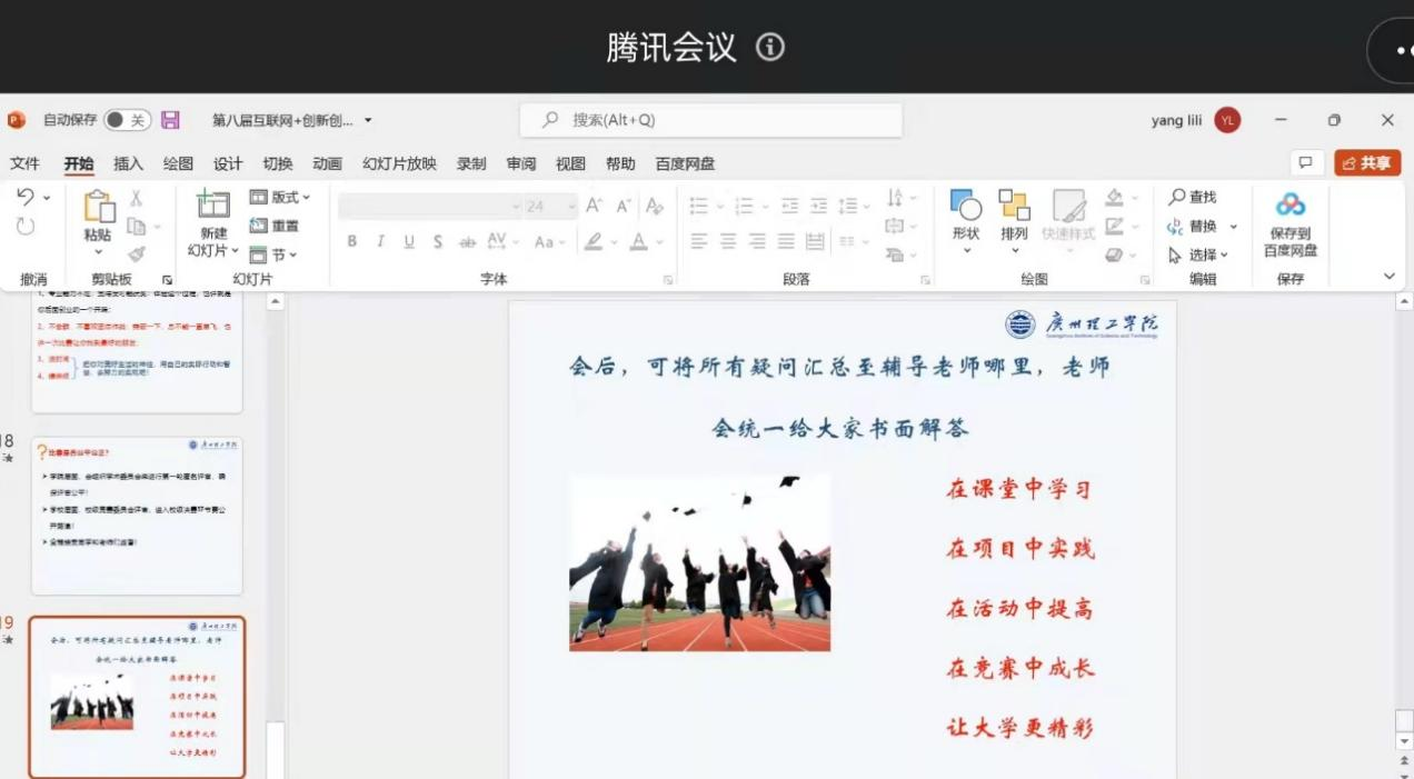 3月18日晚,为了进一步激发大学生创新创业热情,提升学生创新创业技能,展示创新创业教育成果,响应大学生创新创业,威廉希尔williamhill中文特举办“互联网+”大学生创新创业大赛线上动员大会,杨丽丽副院长主持。