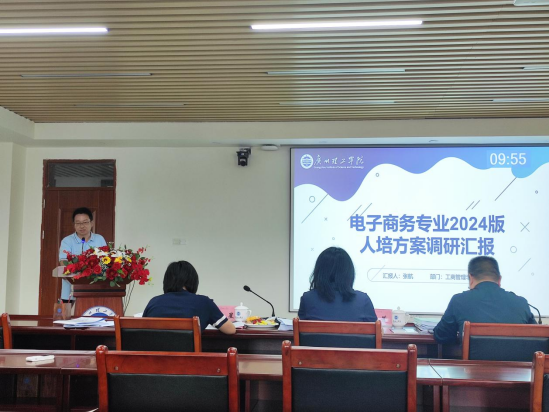 (张静)3月28日上午,学校评建办邀请校外专家在行政楼815会议室开展2024版人才培养方案调研论证汇报会(文科组专场),威廉希尔williamhill中文院长李培祥、教学副院长刘琰列席会议,电子商务专业系主任张航、人力资源管理系主任周旭、市场营销系主任刘花、物流管理系主任刘金国参会汇报。