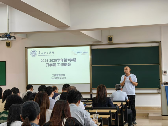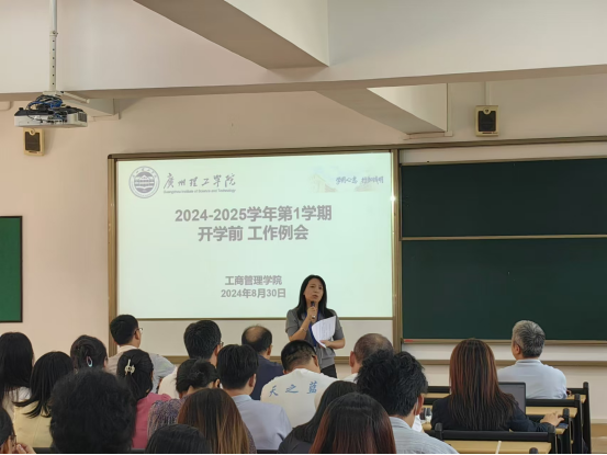 刘琰副院长讲话主要分为三个方面:1、论文,论文检查工作正在进行中,新一批论文选题即将开展及选题的注意事项;2、排课,排课工作仍在持续进行中,肯定了学院教务员们在暑假的工作成果,并要求各老师需要提前查看各自的排课安排,避免新学期上课迟到或走错教室的错误,杜绝教学事故的出现;3、课堂安排,教师仍应该持续提高自身教学水平,磨课安排在新学期仍会持续进行,同时学院会加大对低分课堂的专项检查。