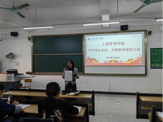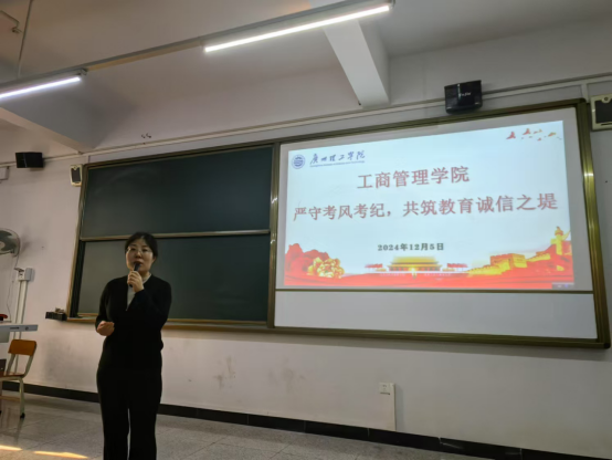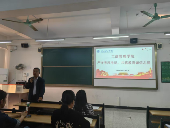 随后,杨惠书记就考风考纪问题发表重要讲话。她强调,考风考纪是学校教学质量和学生学风建设的重要体现,关乎学院的声誉和学生的未来发展。各监考老师务必高度重视,将考风考纪工作落到实处。她指出,监考教师要严格履行监考职责,提前到达考场,认真核对考生身份信息,考试过程中要坚守岗位,不得玩手机、看书报或做与监考无关的事情,要密切关注考场动态,严肃处理任何违规违纪行为,发现一起,查处一起,绝不姑息。各班级辅导员要加强对学生的诚信教育,通过主题班会、签署诚信考试承诺书等形式,引导学生树立正确的考试观念,自觉遵守考试纪律,坚决杜绝作弊行为。