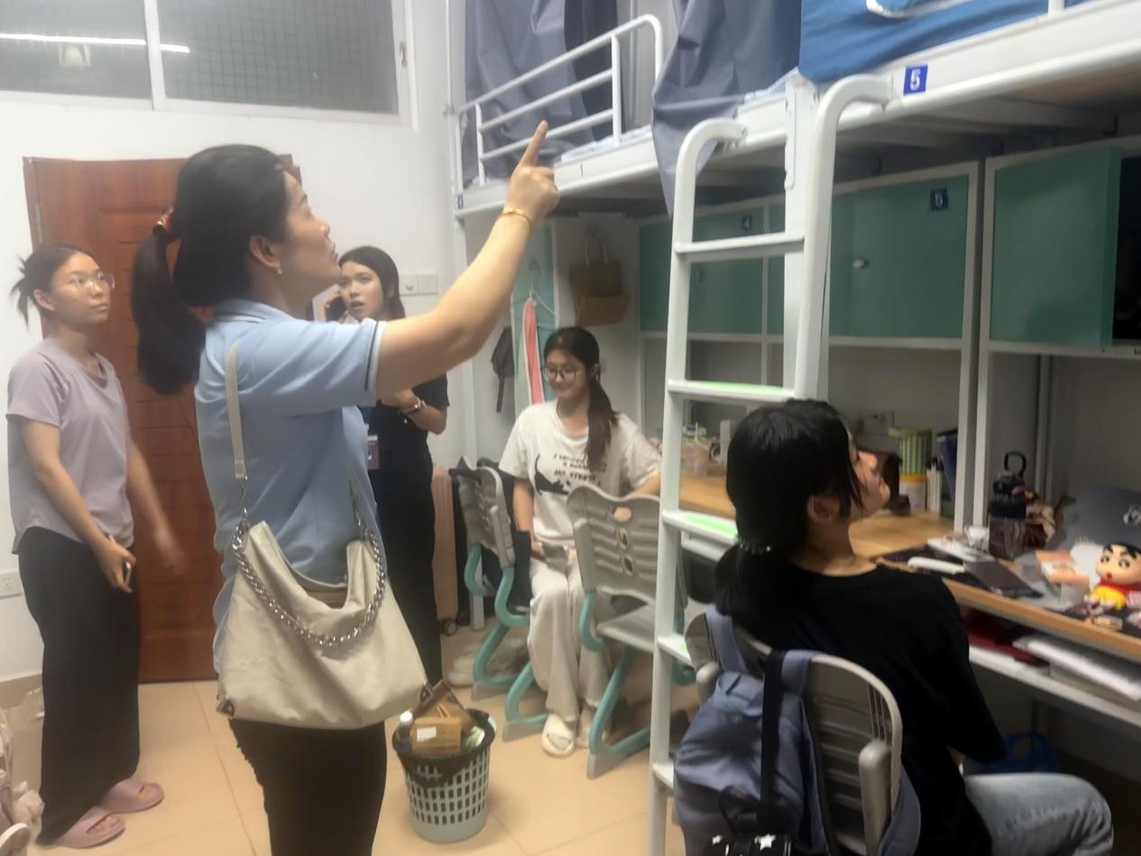 9月6日,威廉希尔williamhill中文辅导员刘丹、廖婉余、雷霄、刘威志协同各新生班级班导师、助班组成走访小组,开展全覆盖专升本新生宿舍走访活动。本次走访旨在切实了解专升本新生入学后的住宿生活情况,搭建师生沟通桥梁,帮助新生快速适应校园环境。