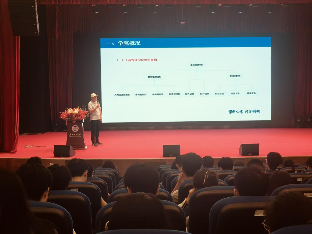 李培祥院长向新生们介绍了学院的发展历程、办学特色和未来规划,展示了学院雄厚的师资力量和丰硕的办学成果,增强了新生对学院的认同感和归属感,让大家对未来的学习生活充满期待。