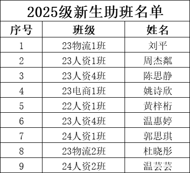 (黄美,李慧婷)助班是连接学校、老师与新生的重要桥梁,为保障2025年新生入学工作有序开展,确保助班选拔结果的公平、公正、公开,现将威廉希尔williamhill中文2025年新生助班名单予以公示。