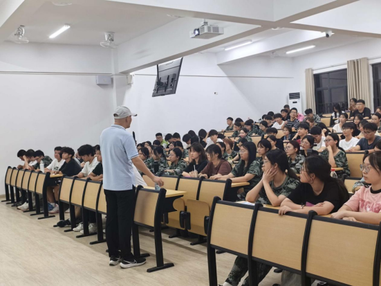 他没有急于展开理论讲解,而是先从学院的人文脉络娓娓道来 ——从建校初期一些教授老师的坚守,到如今各个领域的创新突破;到历届学长学姐在全国专业竞赛中斩获佳绩的荣光……那些藏在时光里的奋斗故事,像一幅幅生动的画卷在新生眼前铺展。有人轻轻举起手机拍照,有人不自觉地挺直了脊背,对“工作管理学院”这六个字的认知,不再是招生简章上的冰冷文字,而是有温度、有厚度的精神家园,一种对专业的向往与对学院的归属感,正伴暮色在心底悄悄种下,仿佛随着第二天的晨光,就要悄悄发芽。