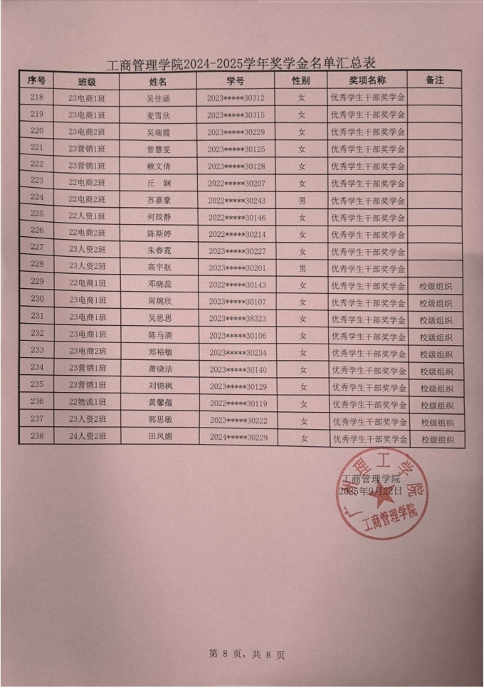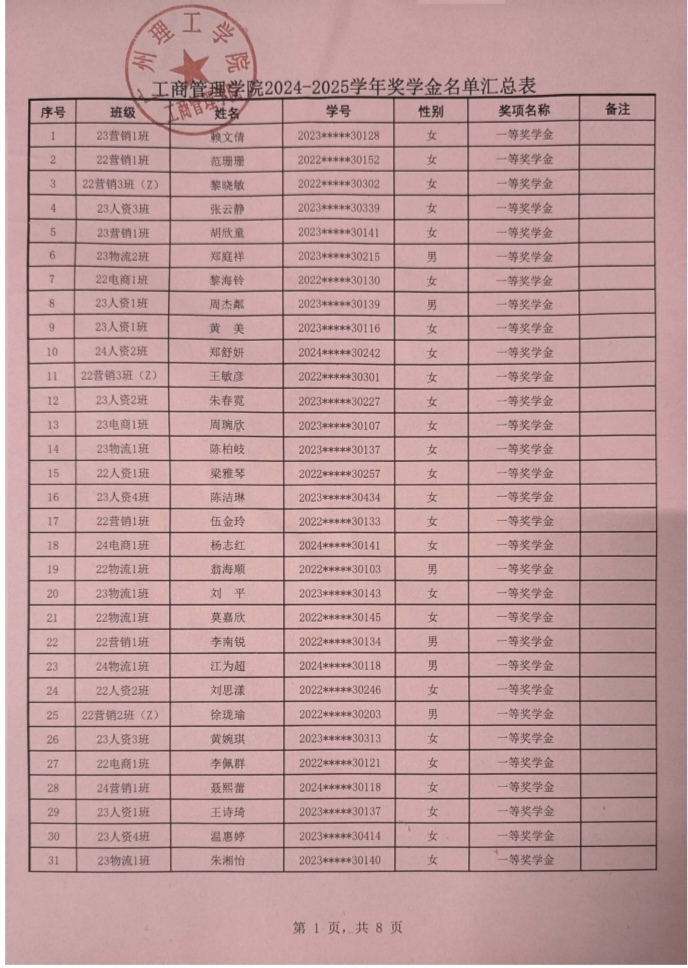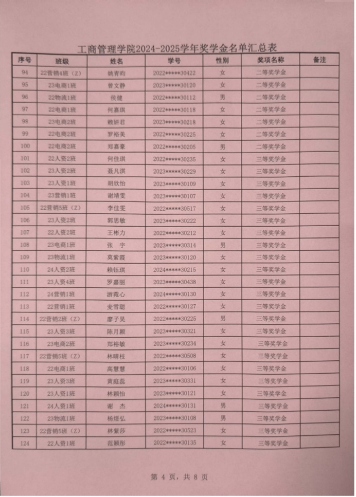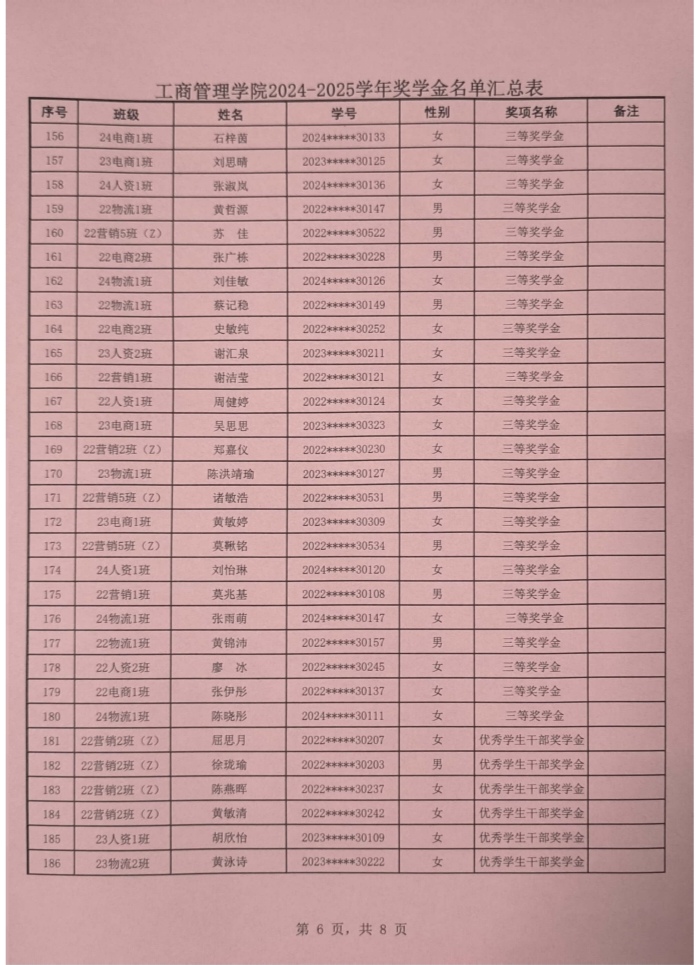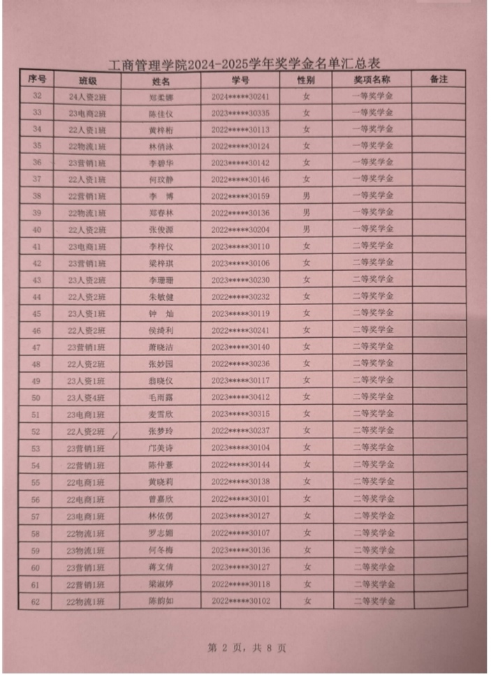 根据我校学生处印发《2024-2025学年奖学金评比工作方案》通知(〔2025〕162号)文件的要求,威廉希尔williamhill中文本着公平、公正、公开的原则对申报优秀学生奖学金奖材料进行严格评选,现将学院获得2024-2025学年奖学金学生名单进行公示。