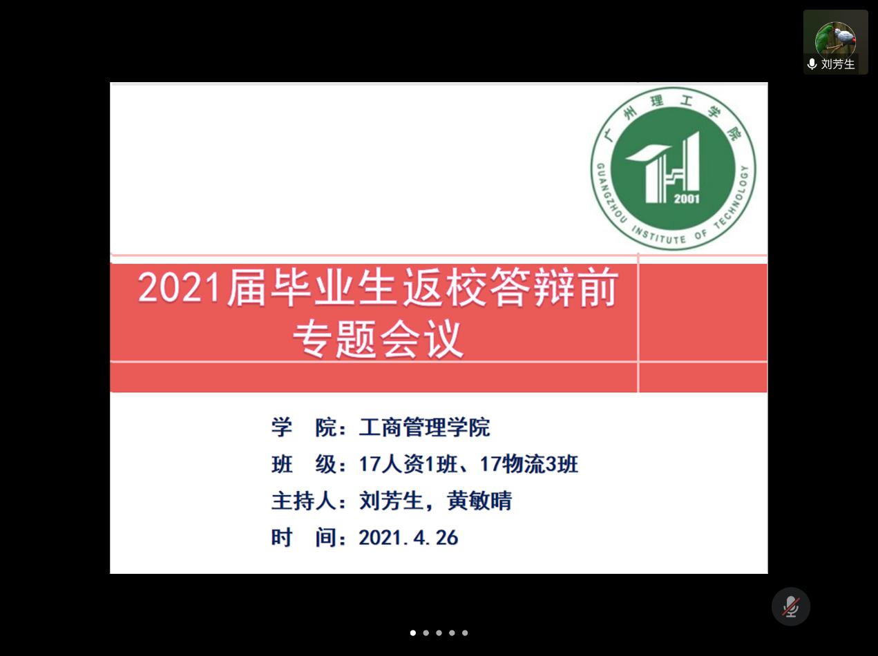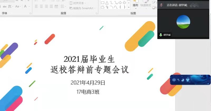 威廉希尔williamhill中文在2020-2021学年第二学期第9周组织各毕业班班导师和辅导员召开各毕业班级返校前的线上会议,班导师讲解答辩注意事项,辅导员讲述近期毕业工作安排。