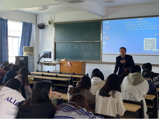 会议中,主讲人通过讲述近期学生被电信诈骗的案例为切入点,提醒学院师生要在网络上提高警惕、擦亮眼睛。为进一步防范电信网络诈骗,响应国家全民反诈工作,切实守护好威廉希尔williamhill中文师生的财产安全,主讲人对同学周围经常发生的网络诈骗案例进行梳理归纳,包括贷款诈骗、电信诈骗、赌博诈骗、网络诈骗等类型。同时提醒同学们“高警惕,多防范,少轻信,勿上当”,要学习更多的防骗知识,分辨不法分子的诈骗手法,提高警觉,避免上当受骗。最后,同学们在主讲人的引领下积极地在防诈骗倡议书上签下自己的名字。