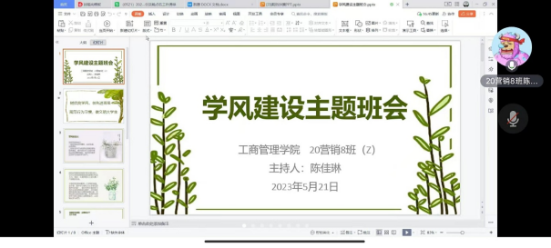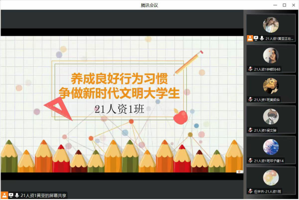 此次班会分别从上课纪律以及规范学生文明行为两方面,针对班级学风现状进行讨论和总结。各班首先介绍了上课纪律以及文明行为准则等内容,然后分析各班学风建设现状,包括班级优良学风行为以及存在的问题,最后提出了切合班级实际、具有班级特色的改善学风现状的具体措施,提升了学生参与学习的积极性和主动性。