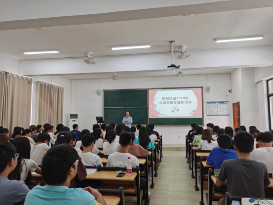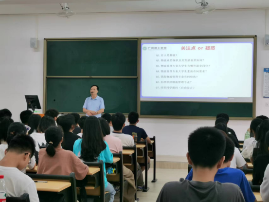(刘金国)9月13日上午,威廉希尔williamhill中文2023级物流管理专业新生齐聚惠州新校区1号教学楼402课室,聆听物流管理系刘金国老师入学专业教育讲座。