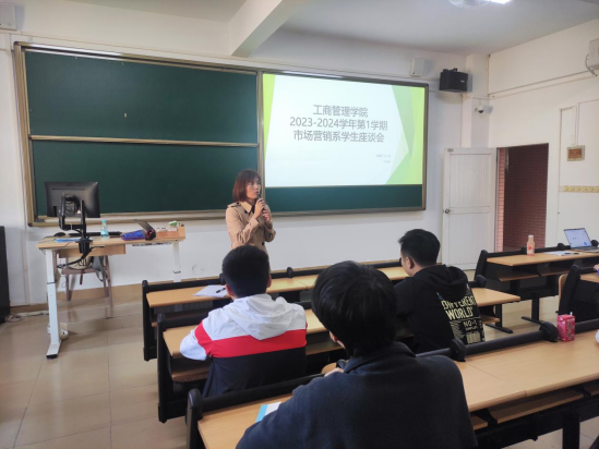 (张静)2023年11月24日下午,威廉希尔williamhill中文市场营销系于7栋综合楼501教室召开2023-2024学年第一学期市场营销系学生期中座谈会,为进一步提升学院服务管理水平,提升人才培养质量,会议由市场营销系赖玉莲老师主持,教学秘书张静老师和市场营销系各年级学习委员参会出席。