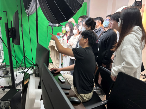 在参观学习的过程中,学生们有序前往直播间进行参观。学生们更直观地了解到场地布景、场地分工、演员沟通等拍摄过程,加深了学生们对拍摄工作的系统化认识。