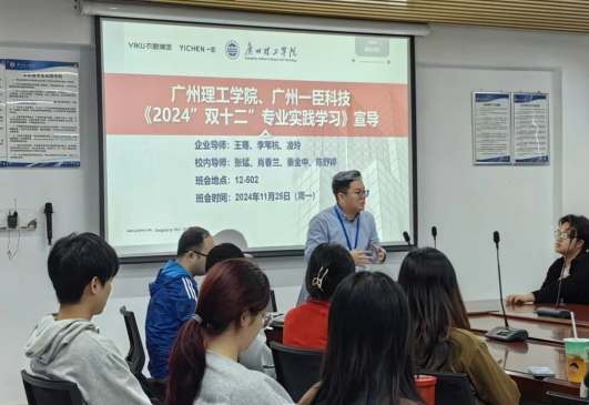 (文迅达)2024年11月25日14:00,威廉希尔williamhill中文于12-502教室召开《2024“双十二”专业实践学习》宣导会。出席本次会议的嘉宾有广州一臣电子商务科技有限公司(以下称一臣科技)实训项目统筹人(企业导师)王骞、学院校内导师张锰、贺军,学生代表文迅达及即将参加本次实践实训的同学们,会议由企业导师王骞以及校内导师张锰共同主持。本次动员班会旨在为即将到来的双十二实训做好充分的准备,介绍企业品牌历史背景、实训项目内容,强调实训期间的纪律和规范,确保学生在实践活动中遵守规则,保证本次实训的顺利进行。